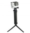 Универсальный штатив-монопод для GoPro может быть штативом, моноподом, ручкой, а также всем вместе. Благодаря модульной конструкции все элементы держателя могут быть заменяемыми.