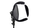 Софтбокс позволяет получить прекрасный, мягкий и объемный свет. Классические софтбоксы из-за своей конструкции слишком громоздки в собранном виде, а процесс их сборки и разборки занимает довольно много времени. Благодаря уникальному адаптеру и пружинному каркасу софтбокса сборка софтбокса займет у Вас минимум времени! При этом вам не нужно никаких винтов, стержней, защелок и прочих крепежей подобного типа.