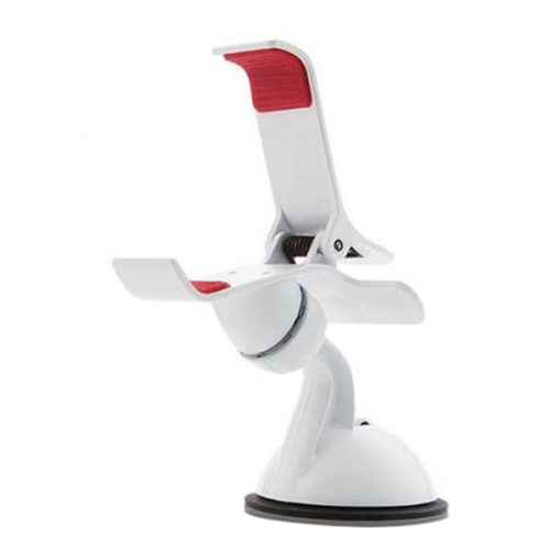 Держатель для телефона на приборную панель или стекло автомобиля. Представляет из себя присоску и зажим, надежно удерживающий смартфон на месте. Благодаря шаровому механизму, держатель легко поворачивается в любую сторону.