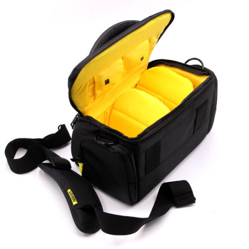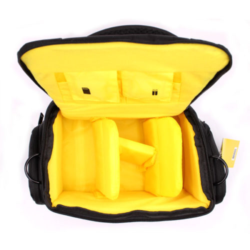 Фотосумка для Nikon имеет водостойкое покрытие, а также мягкие прокладки, которые защищают камеру от повреждений. Внутри достаточно места, чтобы унести камеру и пару объективов. По бокам и спереди сумки имеются карманы для хранения карт памяти, фильтров и прочих аксессуаров.