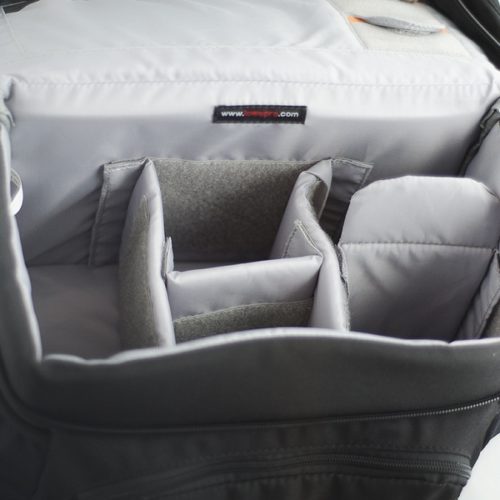 Внутренние отделения можно варьировать по вкусу: перегородки крепятся к стенкам сумки липучками, и свободно переставляются при необходимости.