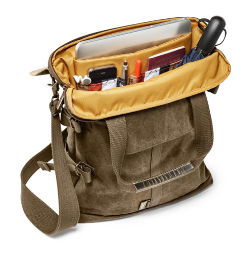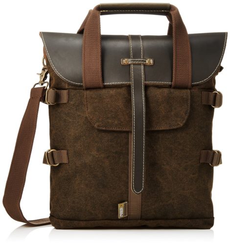 Сумка National Geographic NG A8121 для повседневного ношения. Имеет два кармана – один для мелких предметов вроде документов, ручек и записных книжек, второй может вместить ноутбук до 15″ и беззеркальную камеру, для которой предусмотрен специальный мягкий чехол. Сумка выполнена из кожи и холста, не пропускает воду, а мягкие стенки защищают содержимое от повреждений. Также по бокам имеются крепления для одежды или штатива.