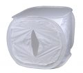 Фотобокс LFPB-4 предназначен для безтеневой предметной фотосъемки. Полупрозрачное тканое покрытие позволяет равномерно распределить освещение для получения мягких контуров теней или для достижения их полного отсутствия. Фотобокс расправляется в рабочее положение за счет гибких пружин, зашитых в края куба по периметру — арматура не требуется. В комплекте есть передняя стенка с прорезью для объектива, а также сменные фоны: белый, синий, черный, красный.