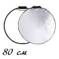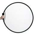Отражатель на 2 рабочие поверхности, одна – серебристая, другая — белая. Диаметр — 80 см. Ручка позволяет удобнее держать отражатель, может пригодиться, если вы работаете без ассистента.