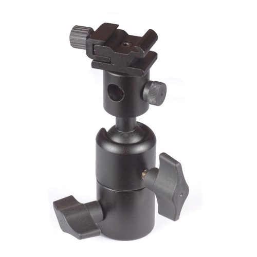 Шарнирное соединение позволяет вращать головку держателя на 360° в обоих плоскостях, что позволяет расположить вспышку с зонтом наилучшим образом.