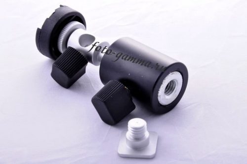 Шарнирное соединение позволяет вращать головку держателя на 360° в обоих плоскостях, что позволяет расположить вспышку с зонтом наилучшим образом.
