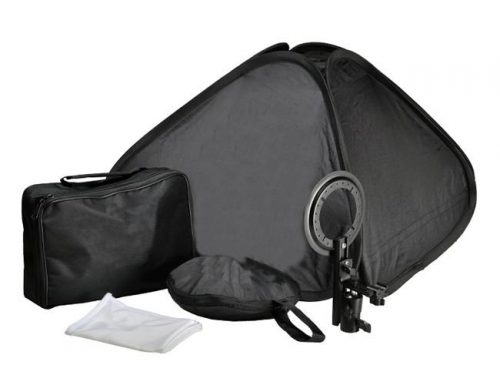 Благодаря отсутствию спиц эта модель собирается за пару минут. Каркас софтбокса складывается и раскладывается подобно отражателю. В комплект входит удобная шаровая головка. Она позволяет установить софтбокс 60 на 60 в любом направлении, зафиксировав всего одной ручкой.