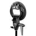 Софтбокс Godox SFUV 5050 имеет универсальное крепление, на которое можно устанавливать широкий диапазон софтбоксов, октобоксов, а также других аксессуаров, изменяющий световой поток. Это возможно благодаря байонету Bowens – стандарту, широко распространенном в фотографии. Помимо этого имеется зажим для накамерной вспышки и отверстие для зонта. Крепление устанавливается на студийные стойки и имеет большой диапазон регулировки.