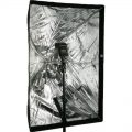 Зонтичный софтбокс – комбинация фотозонта и обычного софтбокса. Спицы и ручка сделаны из металла. Серебряная внутренняя поверхность отражает свет, который после этого проходит через рассеиватель, давая мягкие тени на снимке. Благодаря закрытой конструкции более эффективен чем обычный фотозонт, при этом гораздо легче, чем обычный пружинный софтбокс. Идеальный вариант для выездных съемок.