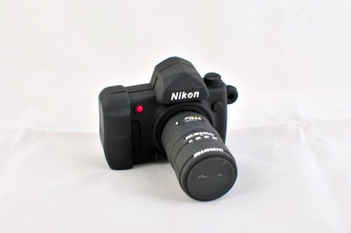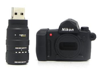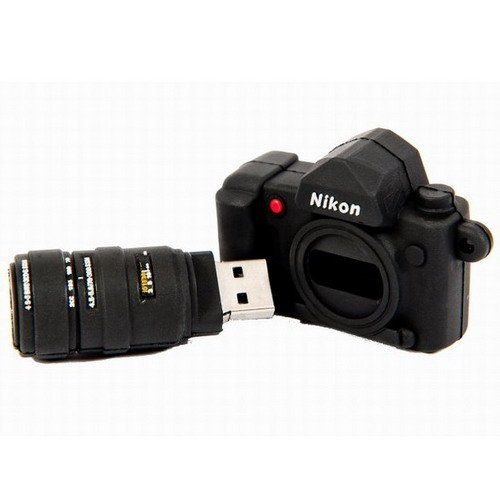 Флешка USB в виде фотоаппарата Nikon изготовлена из качественного прорезиненного пластика, приятного на ощупь. Объем памяти — 16 Gb.