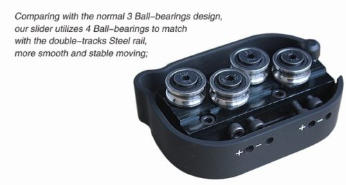 Слайдер Commlite CS-BSL60 сделан из высококачественного авиационного алюминия с применением оборудования высокой точности. По бокам и внизу слайдера располагаются отверстия с резьбой 1/4″ и 3/8″, что позволяет легко использовать его с любыми штативами и другим оборудованием. Ножки, сделанные по принципу “коготь орла” обеспечивают стабилизацию без тряски. Площадка CS-BSL60 двигается при помощи подшипников, что обеспечивает ее плавный ход.