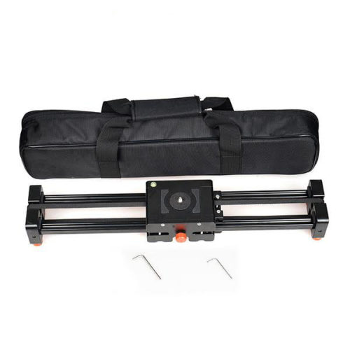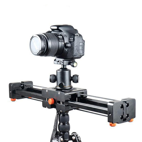 Слайдер Commlite CS-V500 раздвижной имеет в основе площадку, устанавливающуюся на штатив, снабженную подшипниками, по которым движутся рельсы. На рельсы в свою очередь устанавливается другая площадка, к которой крепиться камера. Таким образом при продвижении камеры по слайдеру, Вы можете сдвигать и сами рельсы, расширяя рабочую длину слайдера с 50 до 100 сантиметров.