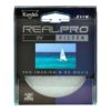Светофильтр KENKO REALPRO UV сделан из тонкого и прозрачного стекла, поэтому несёт только функцию защиты и не оказывает влияния на изображение. Важная особенность защитных фильтров Kenko серии REALPRO заключается в особом покрытии, стойком к загрязнениям (ASC – Anti-Stain Coating). С новой технологией поверхность фильтра приобретает водоотталкивающие свойства и стойкость к загрязнениям. Вода, попадающая на поверхность, собирается в капли и скатывается, оставляя фильтр чистым. Помимо влаги поверхность фильтра также стойка к жиру и другим загрязнениям. Благодаря новому покрытию фильтра фотограф может долгое время вести съёмку даже в сложных погодных условиях и реже отвлекаться на чистку оптики.