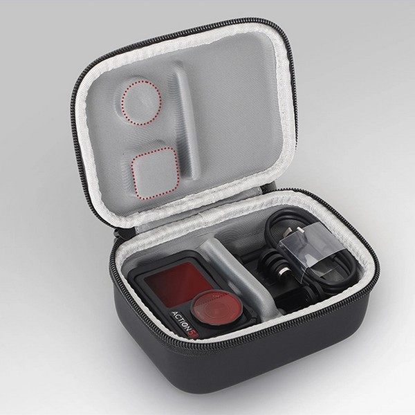 В кейс Sunnylife Standard Bagр можно поместитьDJI OSMO Action + рамку + защитную крышку объектива, крепёж и другие аксессуары для камеры.