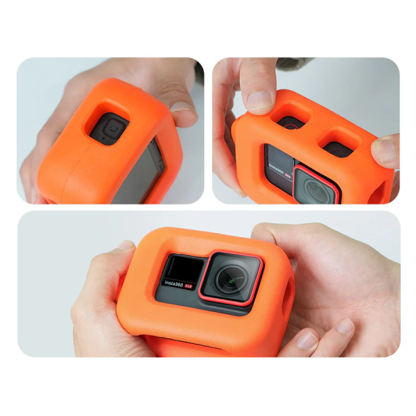 Мягкая, резиновая рамка оранжевого цвета, позволяющая оставаться на поверхности воды камере Insta360. Также хорошо защищает от повреждений при падении на твердую поверхность.