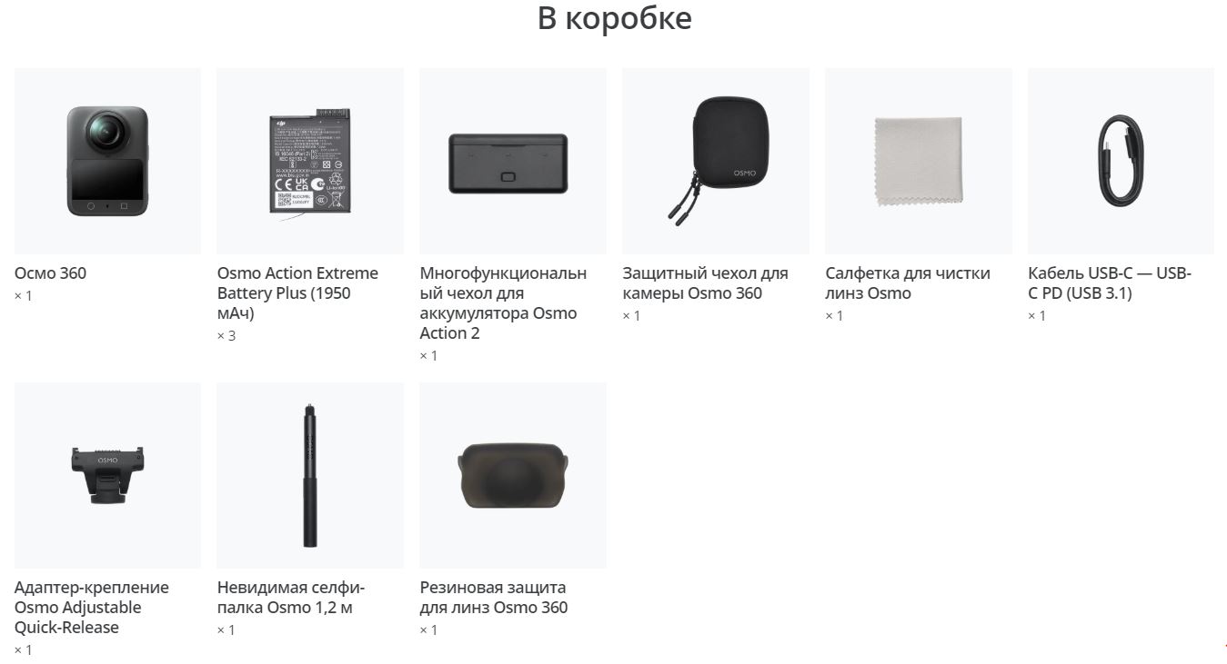 7. В комплект Osmo 360 Standard Combo не входит невидимая палка для селфи, которую можно приобрести отдельно.