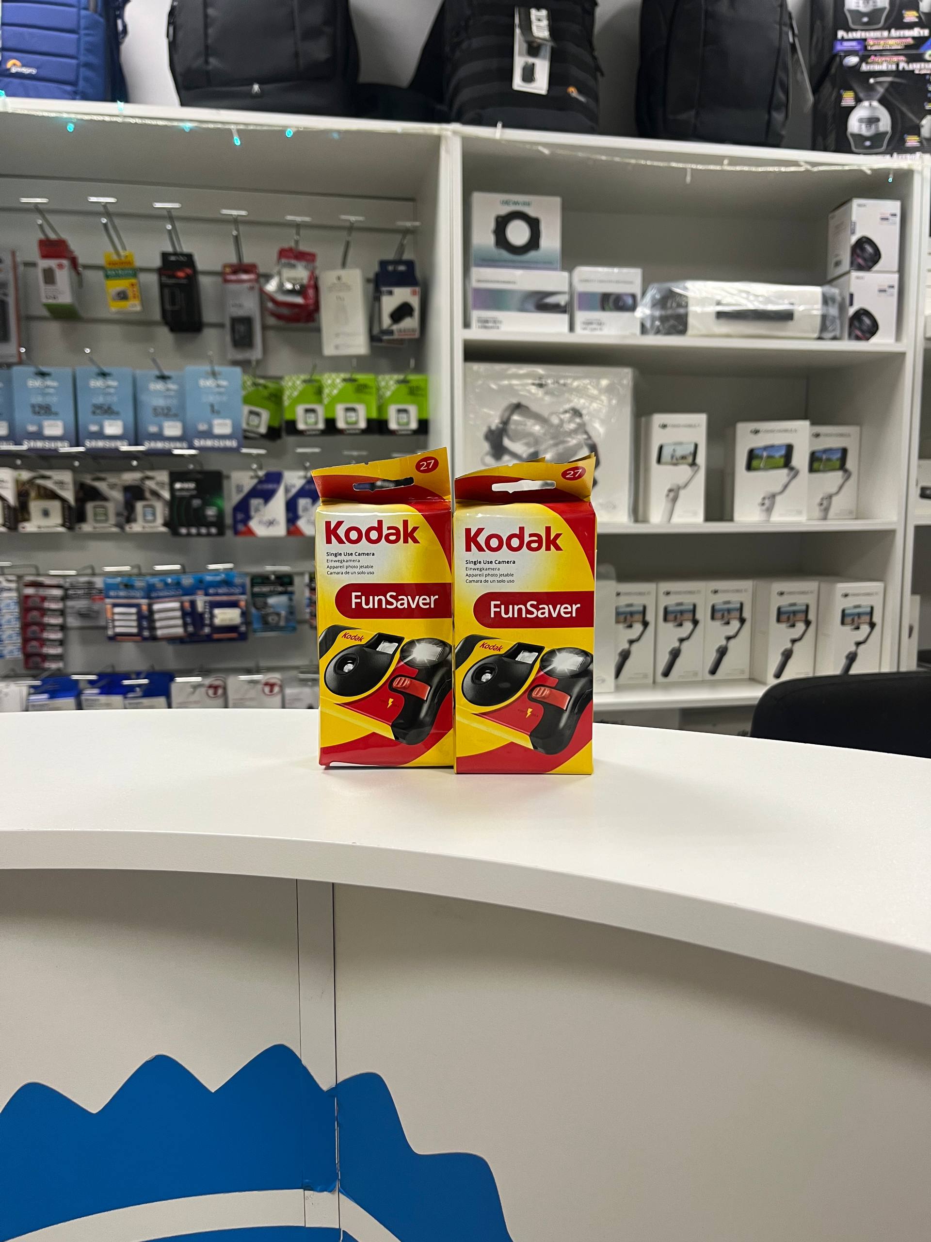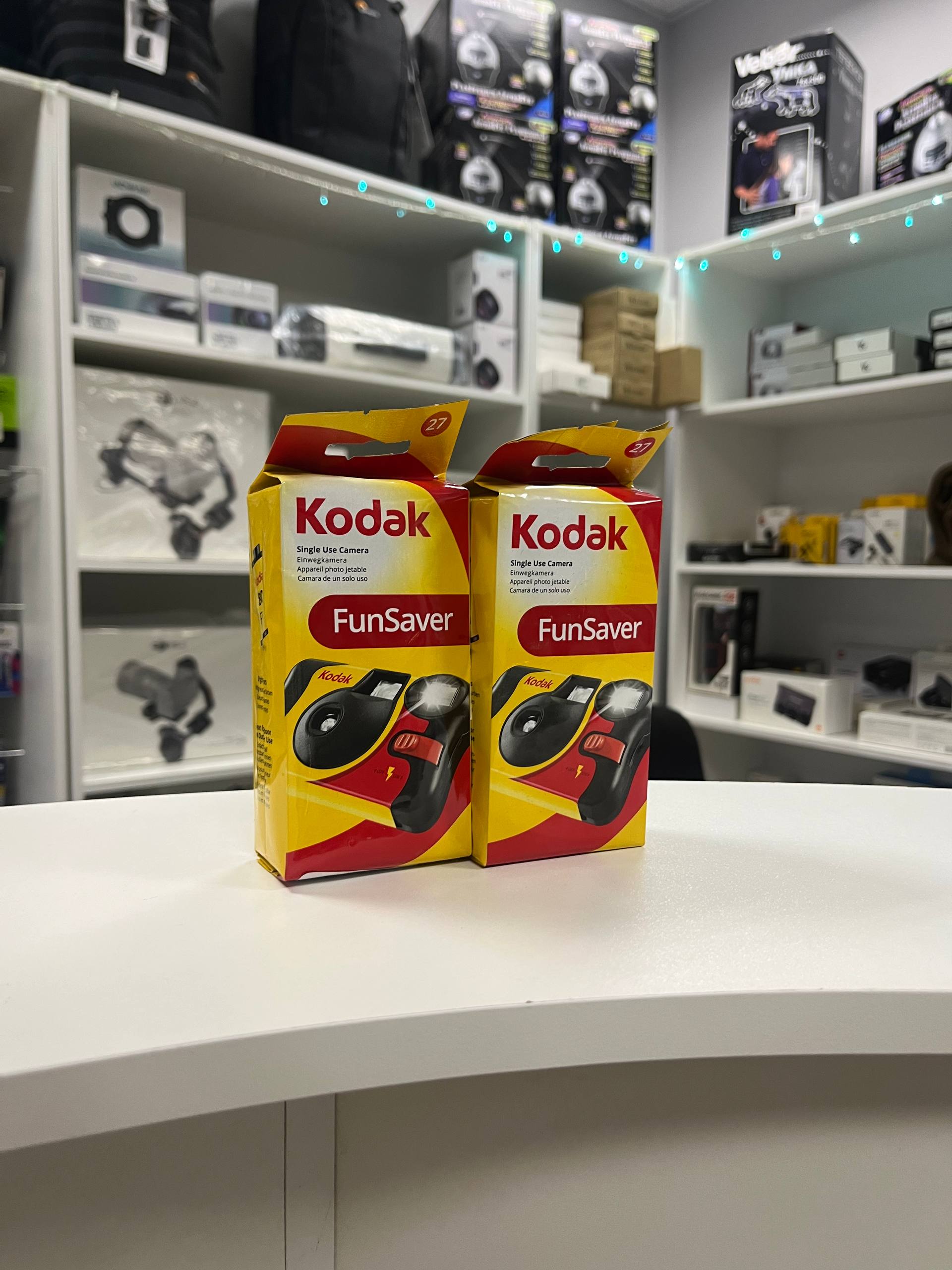 Kodak Funsaver  – это простой одноразовый фотоаппарат, заряженный цветной негативной пленкой Kodak со светочувствительностью ISO 800, 27 кадров. Встроенная вспышка позволяет снимать в вечернее / ночное время, а также в помещениях.