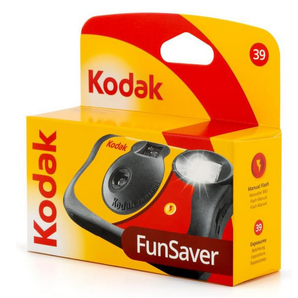 Kodak Funsaver  – это простой одноразовый фотоаппарат, заряженный цветной негативной пленкой Kodak со светочувствительностью ISO 800, 39 кадров. Встроенная вспышка позволяет снимать в вечернее / ночное время, а также в помещениях.