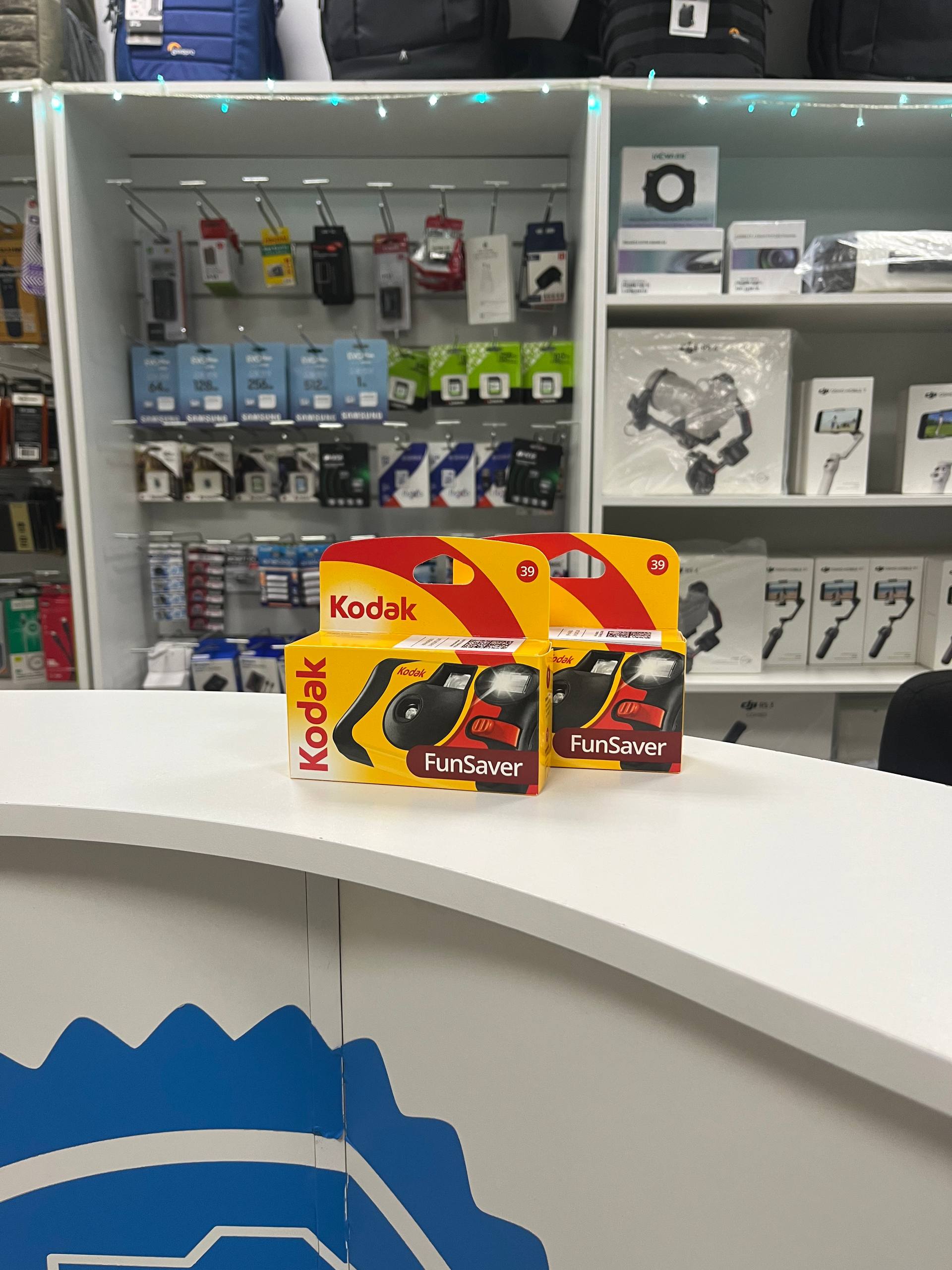 Kodak Funsaver – это простой одноразовый фотоаппарат, заряженный цветной негативной пленкой Kodak со светочувствительностью ISO 800, 39 кадров. Встроенная вспышка позволяет снимать в вечернее / ночное время, а также в помещениях.