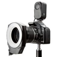 Блок управления (основание) устанавливается на камеру с помощью крепления «холодный башмак», башмак снизу имеет бронзовую вставку с резьбой 1/4 дюйма для установки осветителя на штатив. С помощью 3-х ручек производится независимая плавная регулировка яркости каждого светодиода от 0 до 100%, а также включение/отключение питания. Угол освещения регулируется от 53° до 120°, в комплекте насадки для создания направленного узкого потока света.