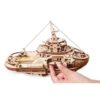 • Визуально кораблик выполнен в традиционной для деревянных конструкторов UGEARS стилистике «скелетон»: наблюдать за работой шестерёнок никогда не надоедает;