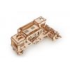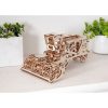 Комбайн выглядит как настоящий не только снаружи, но и внутри: шестерёнчатая передача, настоящая трансмиссия, мотовило – всё работает! Чтобы «завести мотор» просто откатите комбайн назад и отпустите, классическая для самоходных моделей система. Ну, кроме того, что машинку после завода можно поставить на ручной тормоз: такой уровень проработки «классическим» уже не назвать, это оригинальная фишка UGEARS.