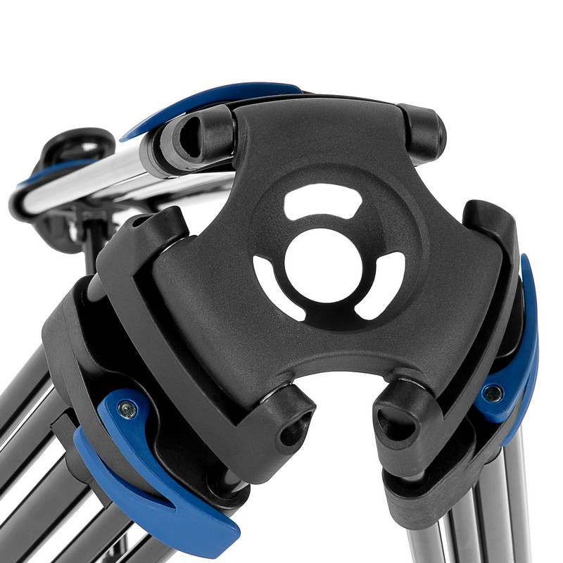 2D-жидкостная видеоголовка штатива вращается вокруг своей оси на 360 и наклоняться в пределах от +90 до -75 для проведения плавного горизонтального и вертикального панорамирования. Головка изготавливается из легкого и прочного алюминиево-магниевого сплава, оборудована быстросъемной площадкой, съемной рукояткой и пузырьковым уровнем. На штативной головке также предусмотрено резьбовое отверстие 3/8″ для установки дополнительного оборудования или обвеса: осветителя, микрофона, монитора.