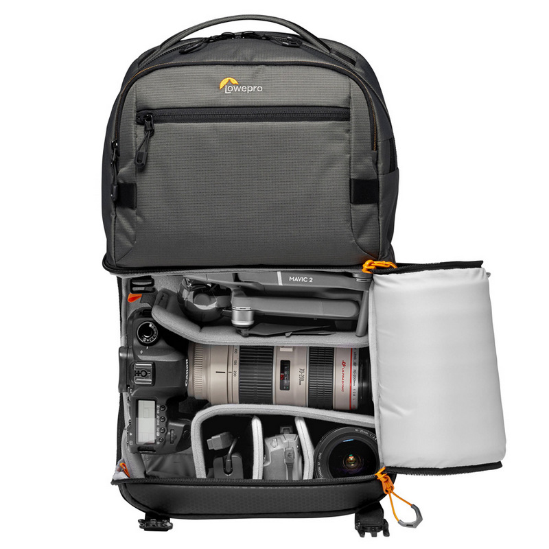 Ключевое отличие PRO-версии — адаптация под профессиональную технику. Нижний отсек для камеры спроектирован так, чтобы вместить беззеркальную или зеркальную камеру профессионального класса с присоединенной батарейной ручкой (вертикальной grip) и 2-3 дополнительных объектива . Общий объем рюкзака составляет 25 литров (против 20.5 л у стандартной версии), а вес — 1.45 кг .