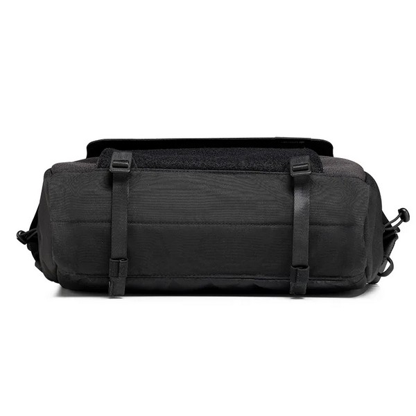 Спереди на сумке предусмотрена широкая панель из велкро для простого крепления различных нашивок: внешнему виду можно добавить частичку индивидуальности. Внешняя ткань и молнии обладают защитой от брызг, однако долго находиться под дождем не рекомендуется: влага начнет постепенно проникать внутрь через швы.