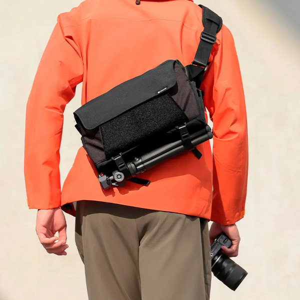 Снаружи по бокам располагаются открытые карманы для бутылки воды или настольного штатива типа Gorillapod. Более крупный штатив можно закрепить снизу с помощью пары ремней. На плечевом ремне имеется широкая плечевая накладка с уплотнителем, поэтому сумку комфортно носить даже при полной загрузке.