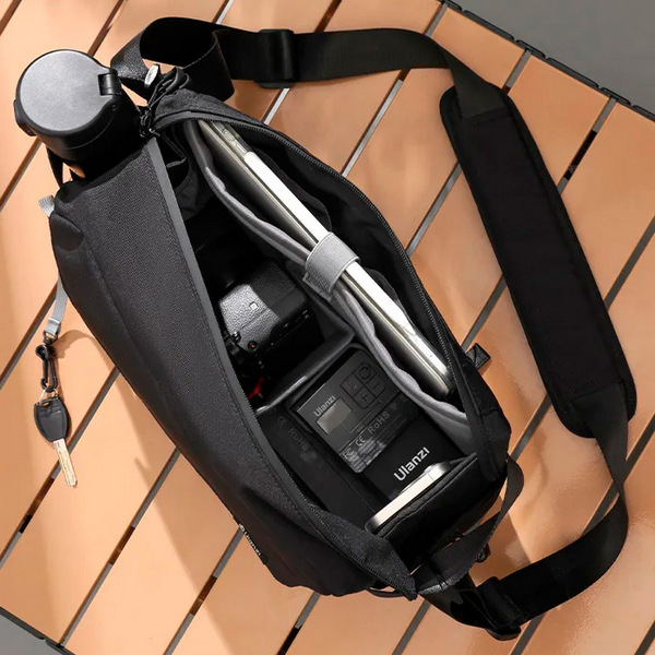 Пространство Фотосумка Ulanzi BP11 в основном отделении организуется с помощью одного раскладного разделителя на липучках. Оно закрывается на молнию, доступ к технике осуществляется через верх. Под клапаном находится объемный передний карман с парой внутренний кармашков, которые позволяют рассортировать батарейки, зарядные устройства, кабели и прочие аксессуары.