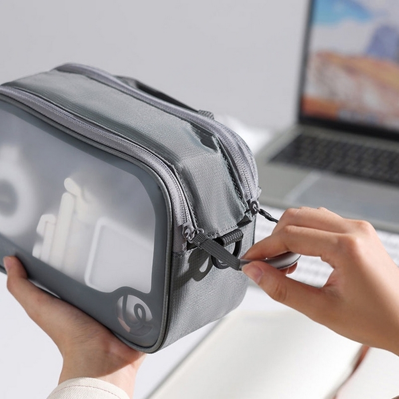 Внутреннее пространство можно разделить на 3 отсека с помощью 2 панелей на липучках со встроенными органайзерами для различных мелочей. Полупрозрачные стенки из ТПУ позволяют понять, что находится внутри, не открывая сумку. Благодаря 2 молниям сумка раскрывается достаточно широко для удобного доступа ко всему содержимому.