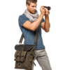 Сумка National Geographic NG A8121 для повседневного ношения. Имеет два кармана – один для мелких предметов вроде документов, ручек и записных книжек, второй может вместить ноутбук до 15″ и беззеркальную камеру, для которой предусмотрен специальный мягкий чехол. Сумка выполнена из кожи и холста, не пропускает воду, а мягкие стенки защищают содержимое от повреждений. Также по бокам имеются крепления для одежды или штатива.