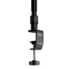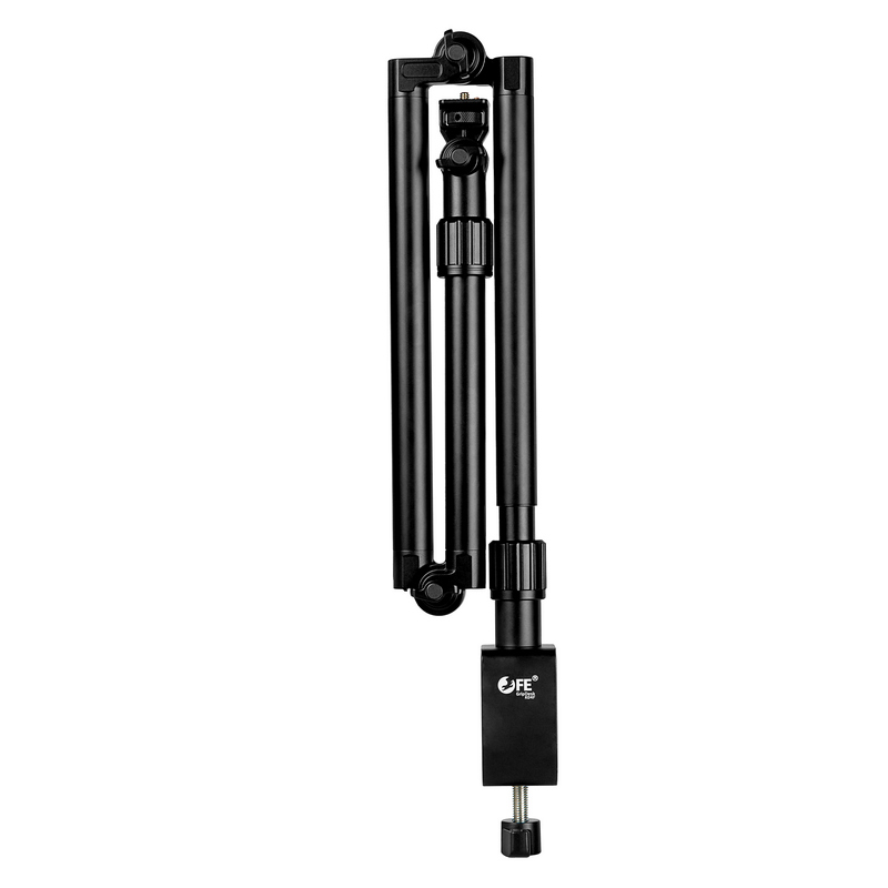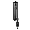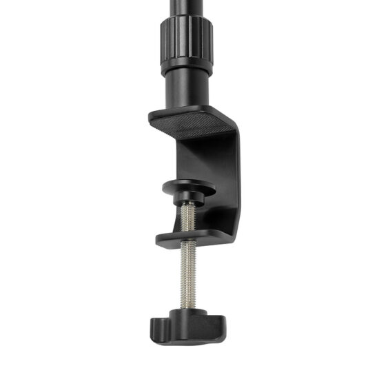 Трехсекционный держатель оснащен мини-головкой с винтом 1/4″ для крепления студийного оборудования. Металлическая мини-головка помогает закрепить оборудование под углом до 90° и с поворотом на 360°. Струбцина зажимается на плоской поверхности толщиной до 60 мм. Максимальная высота установки оборудования – 95 см.
