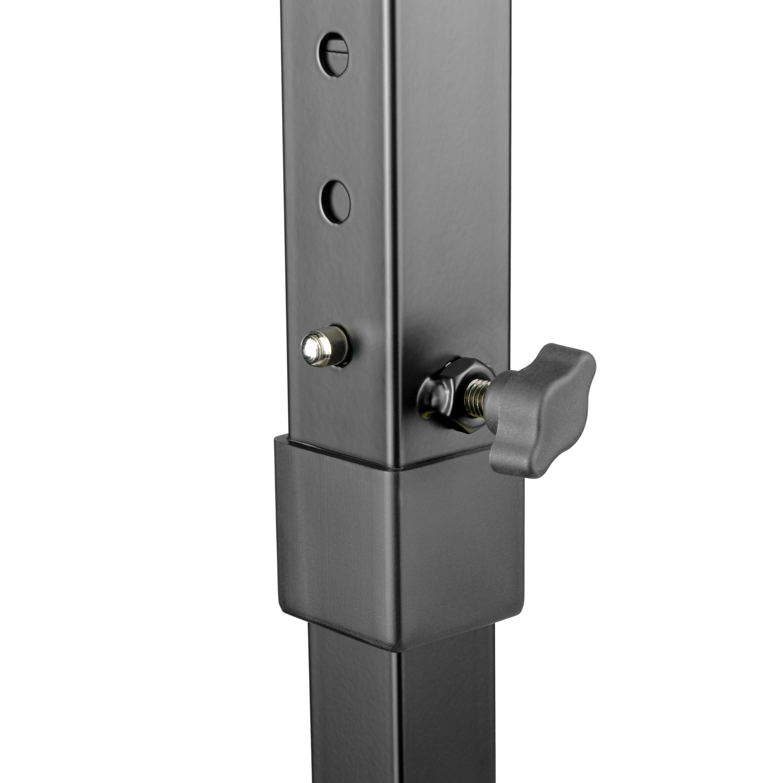 Каждая боковая колонна каркаса имеет 14 отверстий: с помощью подпружиненных штифтов и винтов M8 можно легко регулировать высоту в диапазоне от 61,5 до 100 см (с шагом 3 см).