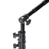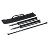 Комплект весом 4.1 кг упаковывается в компактный чехол с наплечным ремнем и ручками для переноски. Комплект прост в установке и не требует дополнительного крепежа. Стойки устанавливаются на горизонтальную поверхность, перекладина закрепляется и регулируется высота – эти действия не займут больше 5 минут. Благодаря такой мобильности комплект можно взять с собой на выездную съемку, временно или постоянно установить в студии.