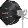 Октобокс предназначен для использования совместно со студийными вспышками и осветителями с байонетом Bowens (кольцо сменное), отлично подойдут для портретной или предметной съемки, где важна круглая форма светового пучка или естественный почти круглый блик на предмете или в глазах модели. Благодаря большой площади окстобоксы позволяют получить мягкий светотеневой рисунок без резких переходов и теней на снимаемом объекте или фоне.