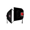 В комплекте два софтбокса SB6080 (размер 60х80 см), изготовлены из жаропрочного материала, на стенках расположены вентиляционные карманы для отвода тепла. Закрытая конструкция позволяет избежать нежелательных бликов и потерь светового потока, рассеиватель смягчает формируемые тени. Софтбоксы устанавливаются на стойки с помощью поворотных кронштейнов MRH1-4. Также в комплекте две стойки L-2440, максимальной высотой до 240 см.