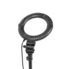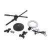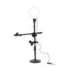 Комплектный бестеневой кольцевой осветитель установлен на телескопическую штангу через наклонно-поворотный кронштейн и подключается к любому источнику питания с портом USB. Осветитель снабжен регулировкой яркости и цветовой температуры. Внешний диаметр осветителя — 165 мм. Внутренний диаметр кольца — 110 мм. Количество светодиодов — 72 шт. Высота центральной штанги для осветителя регулируется от 39 до 52 см и фиксируется цанговым зажимом. Для фиксации кабеля питания на стойке предусмотрены две пластиковых клипсы.