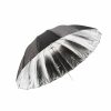 Фотозонт Godox UB-L3 150cm серебро/черный – фотозонт диаметром 150 см, серебряная внутренняя поверхность формирует жесткий и яркий в сравнении с белым зонтом свет, который позволяет получить более контрастные изображения. Конструкция состоит из 16 спиц для создания равномерного круглого светового пятна. Зонт устойчив к механическим повреждениям, обладает высокой износостойкостью.