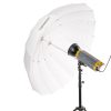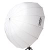 Зонт серии Deep имеет глубокую параболическую форму. Такая форма дает широкие возможности для фокусировки и моделирования света, изменяя расстояние от осветителя до зонта можно получить световой поток нужной интенсивности и плотности.