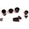 В комплекте поставляется специальный настольный штатив. Он имеет механизм плавных подвижек по вертикали и по горизонтали — с помощью вращающихся рукояток. Т. к. крепление трубы осуществляется с помощью винта 1/4″, при необходимости можно использовать любой фотоштатив.