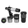 В комплект к телескопу входят два окуляра (8 мм и 20 мм) и 2х кратная линза Барлоу, благодаря этому можно менять кратность увеличения простой заменой окуляров.