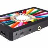 При всей своей функциональности монитор имеет толщину всего лишь в 22,95 мм и массу 200 г, что делает его крайне удобным в использовании, особенно учитывая массивность конструкций профессионального оборудования. На верхнем торце расположились кнопки управления и колесико регулировки, на нижнем же входы/выходы HDMI, питание и разъём для наушников. Отверстие для стандартного крепления 1/4 дюйма есть с верхней, с нижней и с боковой стороны, что позволяет закрепить монитор в любом удобном положении