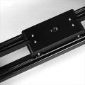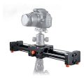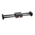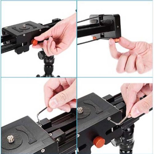 Слайдер раздвижной 80 см имеет в основе площадку, устанавливающуюся на штатив, снабженную подшипниками, по которым движутся рельсы. На рельсы в свою очередь устанавливается другая площадка, к которой крепиться камера. Таким образом при продвижении камеры по слайдеру, вы можете сдвигать и сами рельсы, расширяя рабочую длину слайдера с 50 до 100 сантиметров. Слайдер выдерживает нагрузку до 8 кг.