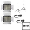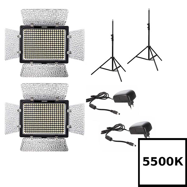 Мощность осветителей плавно регулируется от 0 до 100%, светильники оснащены дистанционным управлением, световой поток можно регулировать шторками, в комплект входят матовые рассеиватели, белый и оранжевый.
