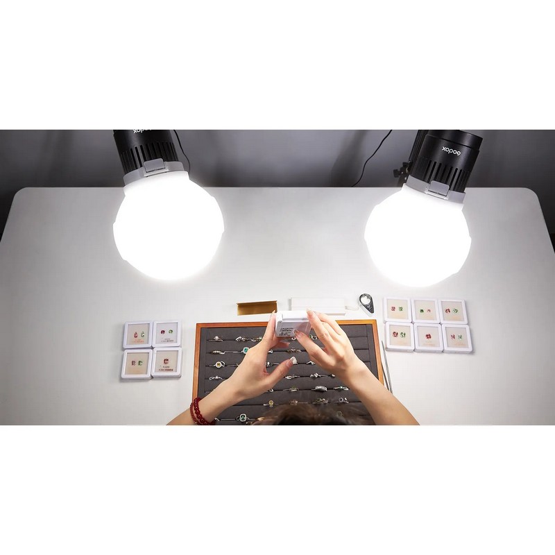 Световой поток от Godox LITEMONS LC30D можно сформировать и смягчать при помощи комплектного силиконового рассеивателя Godox ML-CD15. В дополнении к очень яркому точечному освещению, пользователь получает мягкий рассеянный свет, подходящий для предметной съемки, записи прямых эфиров, онлайн-уроков, мастер-классов и многого другого. Силиконовый рассеиватель благодаря гибкой складной конструкцией принимает разные формы и дает новые способы формирования света. В полностью разложенном состоянии сферический рассеиватель поможет освещать пространство на 360 градусов. Если задняя часть рассеивателя сложена, световой поток ограничивается на 180 градусов, а при складывании передней части можно добиться большей контрастности.